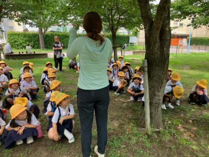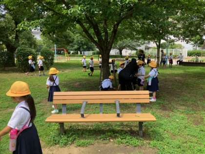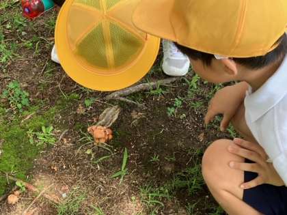 公園に生き物や植物の観察に行きました。キノコが生えていました。