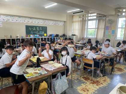 今日は和食献立でした。4年生の教室では「高野どうふのいり煮はだしの味がしておいしい!」「お米がもちもちしている!」と食レポしてくれました。