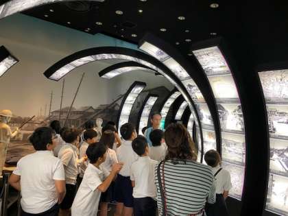 パネルのトンネルで大阪で起きた台風の被害について学びました。