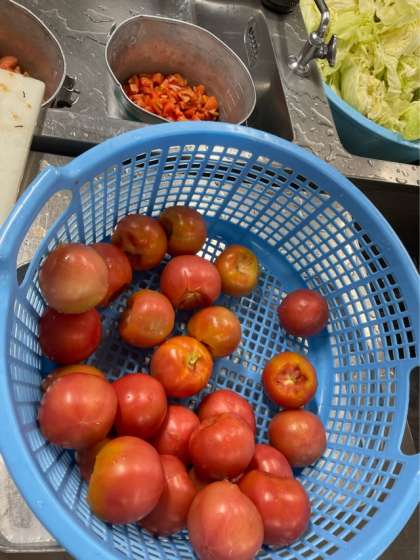 生のトマトを使用したスープスパゲッティは、鶏肉とベーコンで旨みを出しています。ほどよい酸味が子どもたちにも大人気でした。