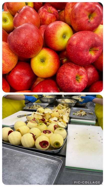 米粉のマカロニを使用したほうれんそうのグラタンは子どもたちに大人気でした。またデザートにはりんごが出ました。りんごは1年中出回っていますが、これからの時期が旬を迎えます。今日は岩手県産の江刺(えさし)りんごでした。
