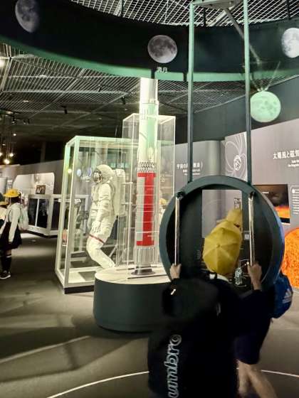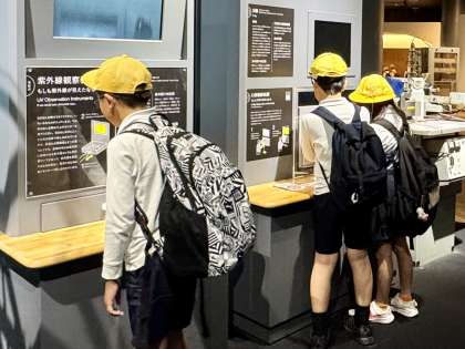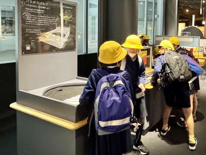 プラネタリウムを見た後、班ごとに展示場を見学しています。