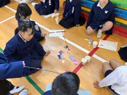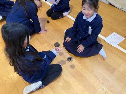 あきみつけで作ったどんぐりや葉っぱのおもちゃでお店屋さんをしました。