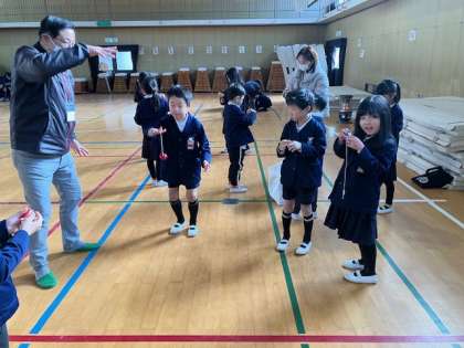 地域の方々から昔から伝わる遊びを教えていただきました。