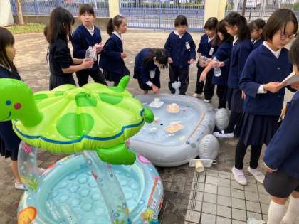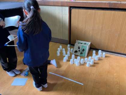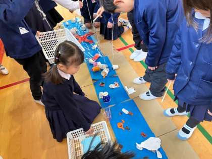 2年生が自分たちで作ったおもちゃのお店に1年生を招待しました。