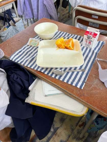 きょうのデザートは和歌山県産のデコポンです。形が特徴的で、甘くて食べやすく子どもたちにも人気がありました。