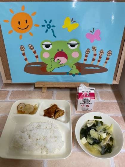 「鶏肉の八丁みそだれかけ」は、オーブンで焼いた鶏肉に、砂糖、みりん、八丁みそ、赤みそで作った濃厚なタレをからめています。ごはんによく合いとてもおいしかったです。
