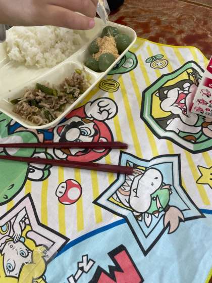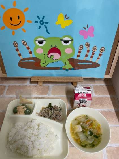 今日はデザートに「よもぎだんご」が出ました。食べるときにきな粉をかけていただきます。よもぎは春の野草です。少しずつ春が近づいていますね。