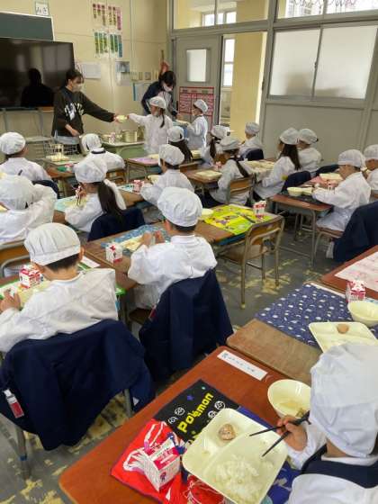 今日のみそ汁は、こんぶとけずりぶしで出汁を取り、たくさんの具材が入っています。給食は育ちざかりの子どもたちの心と体が健康に成長することができるよう、栄養バランスを考えて作られています。