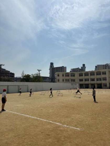 歩幅を調整しながら速く跳び越えようと頑張っていました。