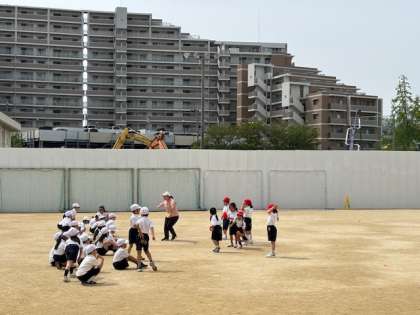 赤と白のグループに分かれて、鬼ごっこをしていました。