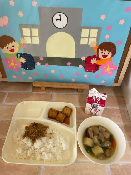 今日の給食は、和食献立でした。「紅さけそぼろ」は、紅さけフレークに、いりごま、あおのりをみりんやしょうゆなどで味付けした手作りのふりかけです。ごはんとてもよく合いおいしくいただきました。