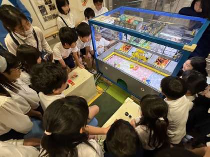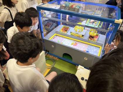 実物のクレーンと同じ操作レバーで模擬操作をしました。