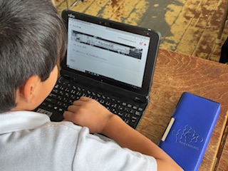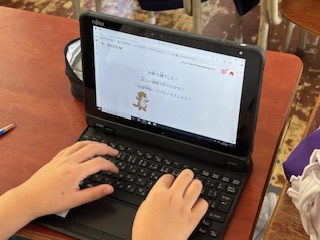 タブレットを使用した「らっこたん」で、タイピングの練習をしていました。