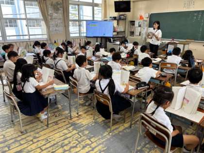 音読を1行ずつ交代で読んでいました。上手になってきました。