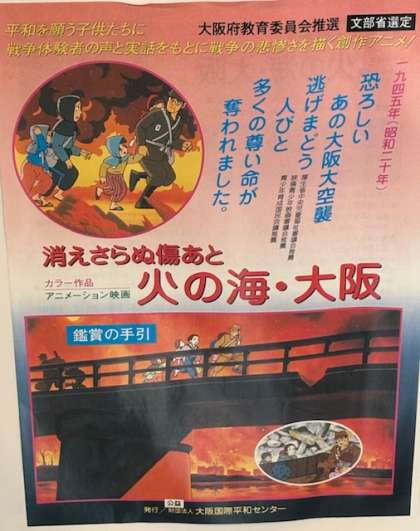 10時半からは、戦争の恐ろしさをアニメーションで見ます。大阪大空襲がいかにひどいものであったかを感じることができます。