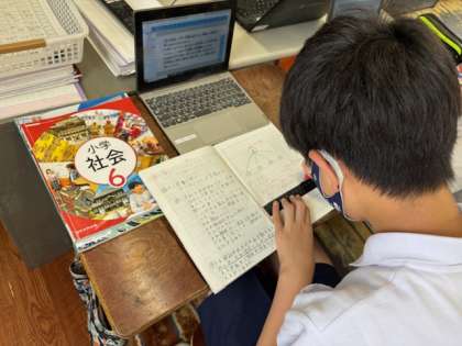 大和朝廷の勢力について、図や資料から考えをまとめていました。