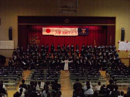 また、新2年生がお祝いの言葉と歌、合奏をおこなってくれました。