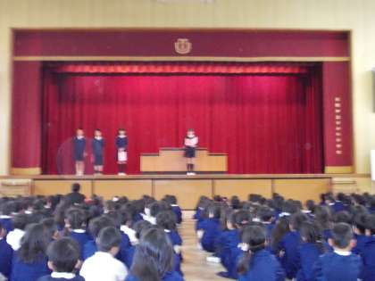 始業式では、新6年生代表から、今年頑張りたいことについての発表がありました。