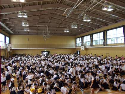 今日は、講堂で、先生についてのクイズで盛り上がりました。