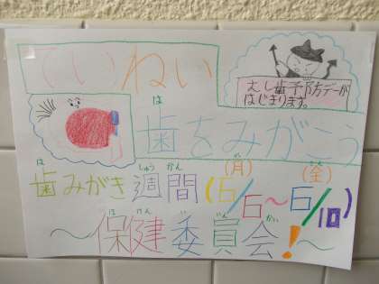 児童朝会では、保健委員会から歯みがき週間の呼びかけがありました。
