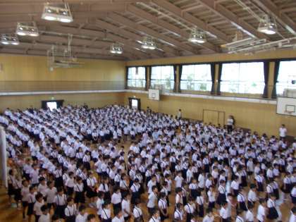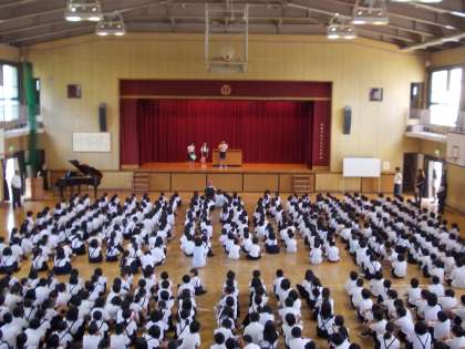 最初に3年生の代表者が、1学期頑張ったことを発表しました。