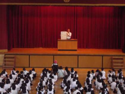 次に校長先生からのお話があり、最後に「すみれ児童の歌」をみんなで歌いました。