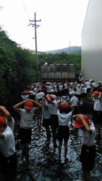 つるつるすべって、なかなかうまく捕えられず悪戦苦闘した子ども達。最後には、ほとんどの子どもが自力で捕えることができました。