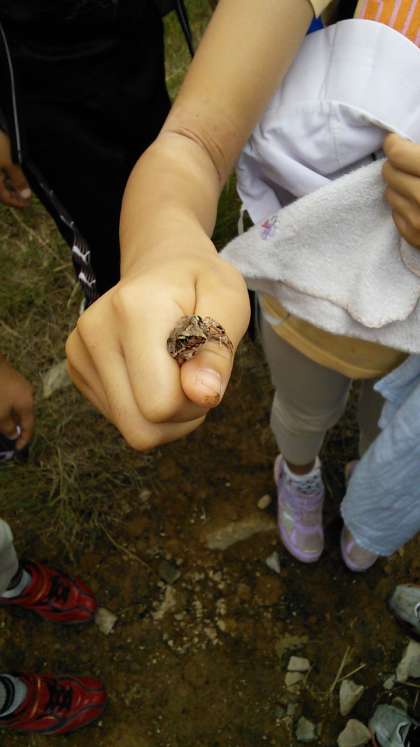 山頂から眺める景色は最高!山ガエルを見つけるなど、自然と大いに戯れています。