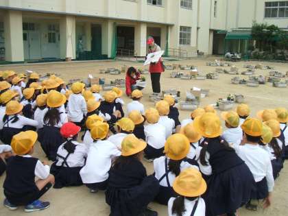 鶴見緑地の公園課の方には「遊具の使い方」を紙芝居で教えていただきました。