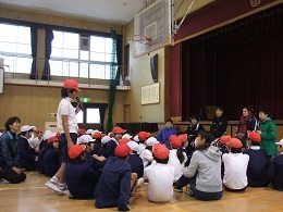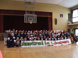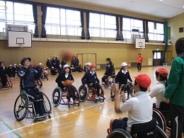 2月14日、雪の降る中、車いすバスケットボールのオーストラリア代表チームと日本代表チームのメンバーが、“地域親善交流会”として、来校しました。
