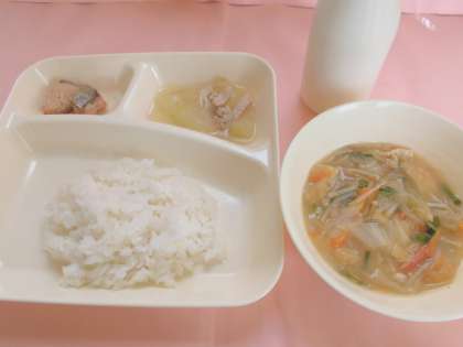 7/10(月)の献立は、さけのさんしょう風味焼き、みそ汁、とうがんの煮もの、米飯、牛乳でした。