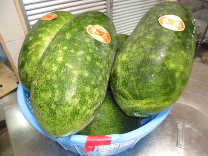 すみれ小学校には、とても大きな冬瓜が7玉届きました。