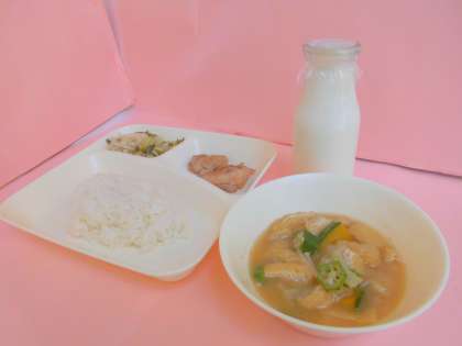 7/19(水)の献立は、鶏肉のてり焼き、みそ汁、切り干しだいこんのゆずの香あえ、米飯、牛乳でした。