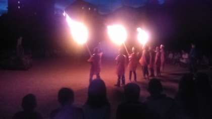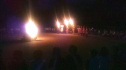 昨日夜のキャンプファイヤーの様子です。厳かな雰囲気の中で火が灯されました。学校で準備・練習してきた出し物も披露されました。