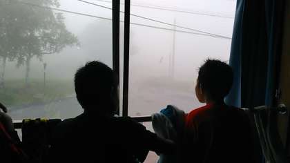 お風呂タイムの待ち時間、外では霧が立ち込めてきました。