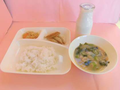 9/1(金)の献立は、いわしてんぷら、みそ汁、切り干しだいこんのいため煮、ごはん、牛乳でした。
