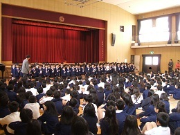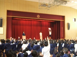 1年生は、元気な声で チューリップの歌をうたい、よろしくお願いしますと あいさつをしました。