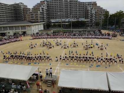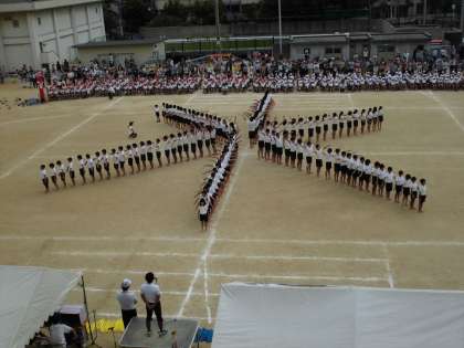 6年生の演技はなわとびあり、組体操あり、フラッグを取り入れたマスゲームありと盛りだくさんでしたが、最後の運動会を思い出に残るものにしようとする子ども達の意気込みが感じられ、すばらしいものになりました。