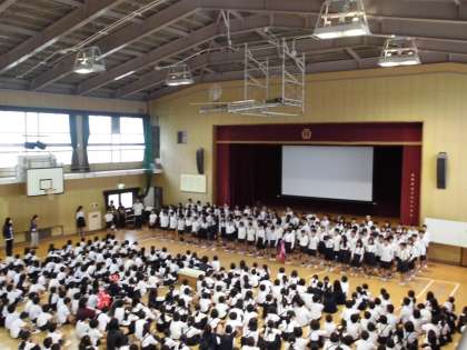 集会の最後には、「青い空は」を全児童で歌いました。