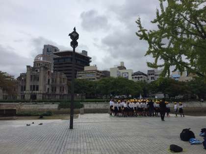 平和記念公園に到着しました。空はどんよりしていますが、雨は降っていないようです。