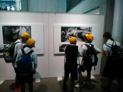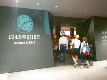 広島平和記念資料館に入り、展示物を見ながら、原爆の恐ろしさについて学んでいます。