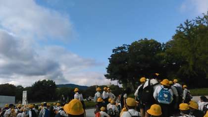 語り部さんの話を聞き、フィールドワークへ。青空が出てきました。