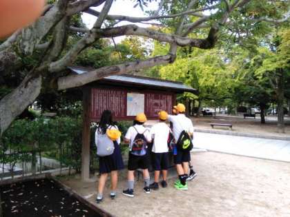 グループに分かれてフィールドワークをしています。間もなく広電に乗って、宿舎に向かいます。