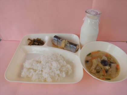 2/9(金)の献立は、さんまのみぞれかけ、五目汁、茎わかめのつくだ煮、ごはん、牛乳でした。