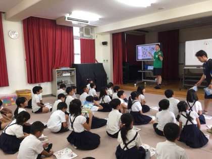 オーウェン先生による今年2回目の英語の授業ということもあり、子どもたちの緊張もほぐれ楽しく学習していました。