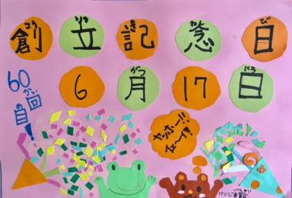 今日の児童朝会では、60周年おめでとう集会の呼びかけの練習をしました。前回の練習よりも上手になっていました。子どもたちは、楽しい6月17日を迎えられるように、あと一週間学校まつりの準備とおめでとう集会の練習を頑張っています。