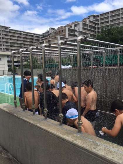 少し涼しかったですが子どもたちは待ちに待ったプールで、シャワーを浴びながら「地獄のシャワーや!!」と大興奮。