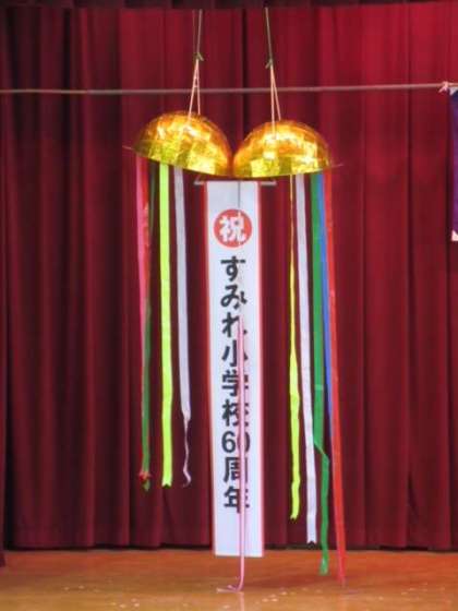 全校児童で60周年を祝う呼びかけをしたり、すみれっちとゲームをしたり和やかでいい集会となりました