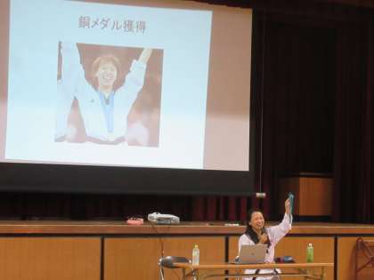 「トップアスリートゆめ授業」の取り組みでシドニーオリンピック、テコンドー銅メダリストの岡本依子さんに来ていただきました。